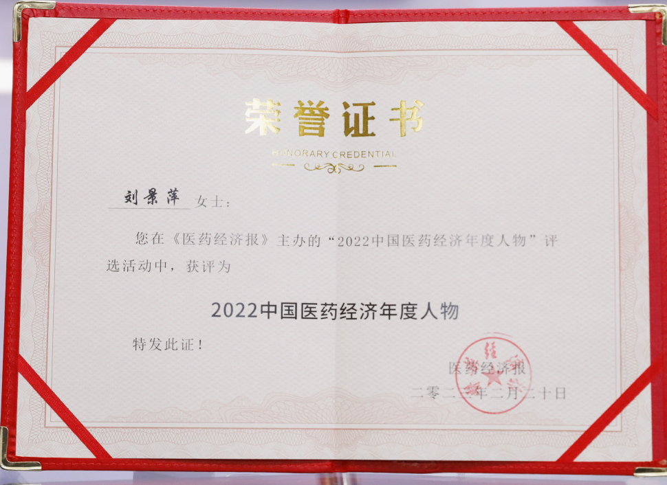 EBpay药业集团董事长刘景萍当选“2022中国医药经济年度人物”